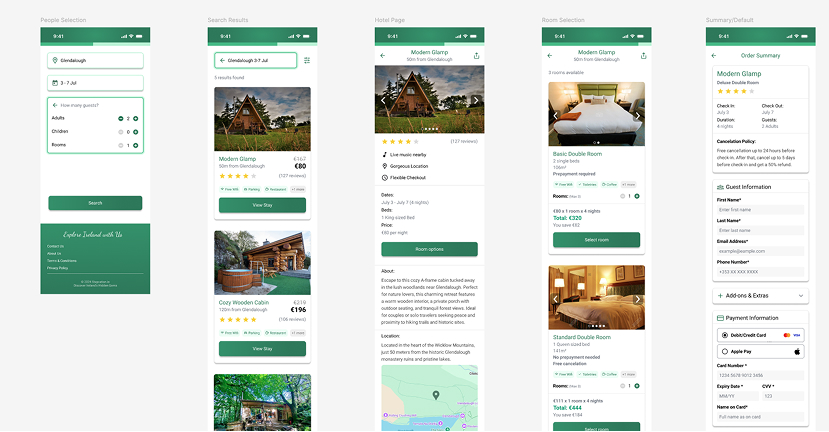 I wanted to create a hotel booking platform that feels distinctly Irish while delivering a seamless, intuitive booking experience. The design needed to: